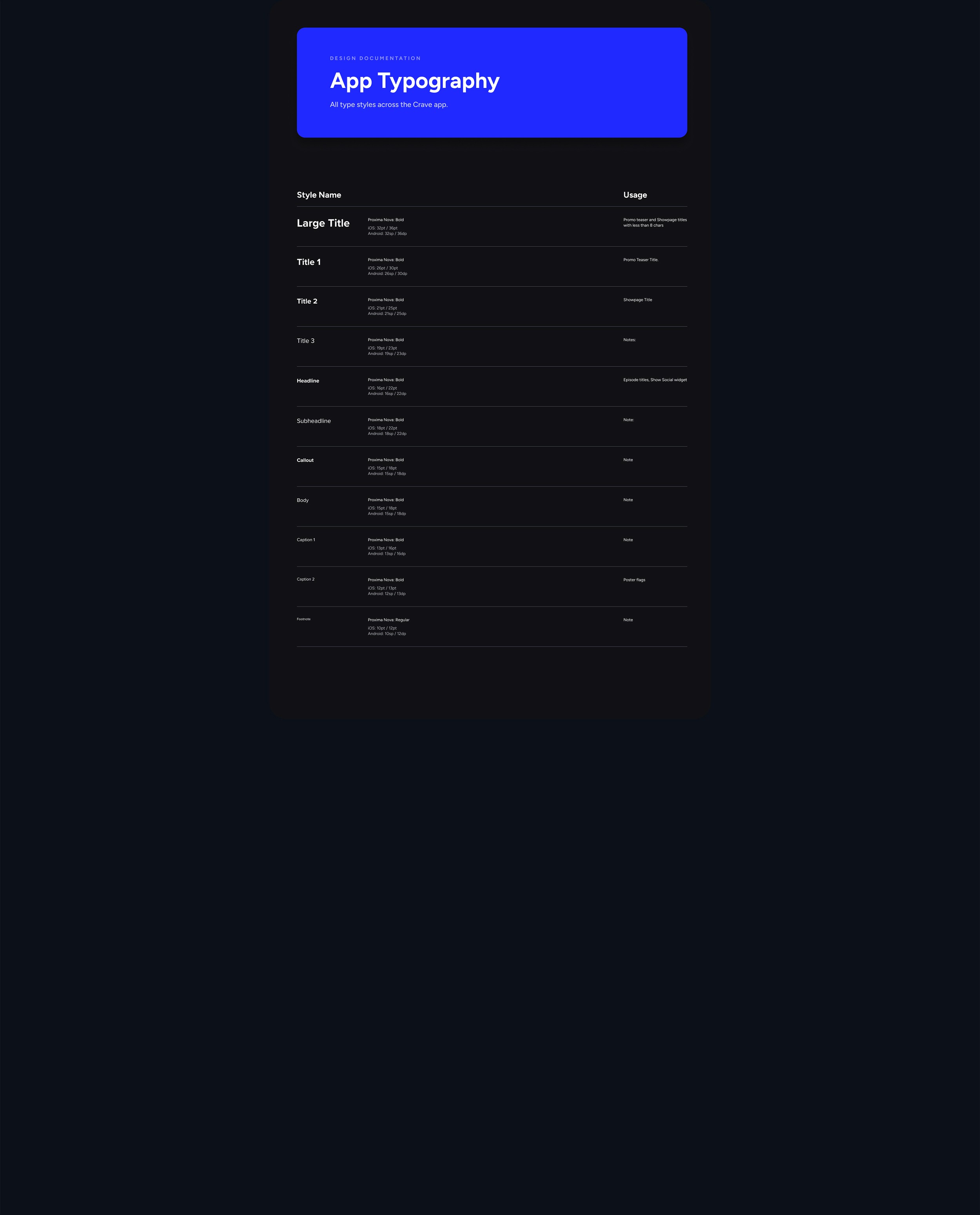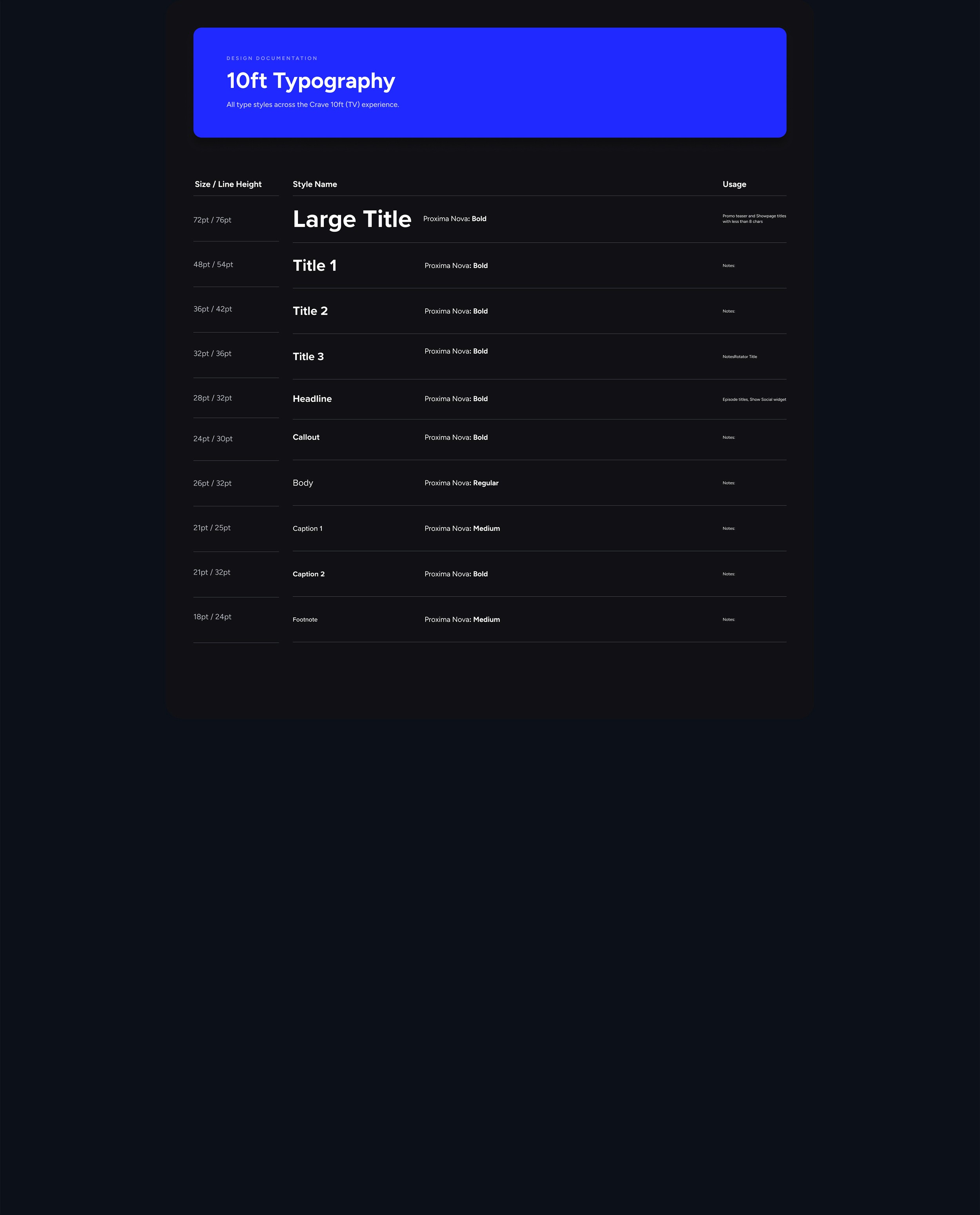 Crave needed a design system to address the growing complexity and scale of its digital platforms, which span web, mobile, and Connected TV. With diverse content offerings and frequent updates, the Crave experience required a consistent and cohesive visual identity to ensure users could navigate seamlessly across devices. Prior to implementing a design system, Crave's visual elements, components, and interactions varied across platforms, leading to inconsistencies that impacted user experience and brand recognition.