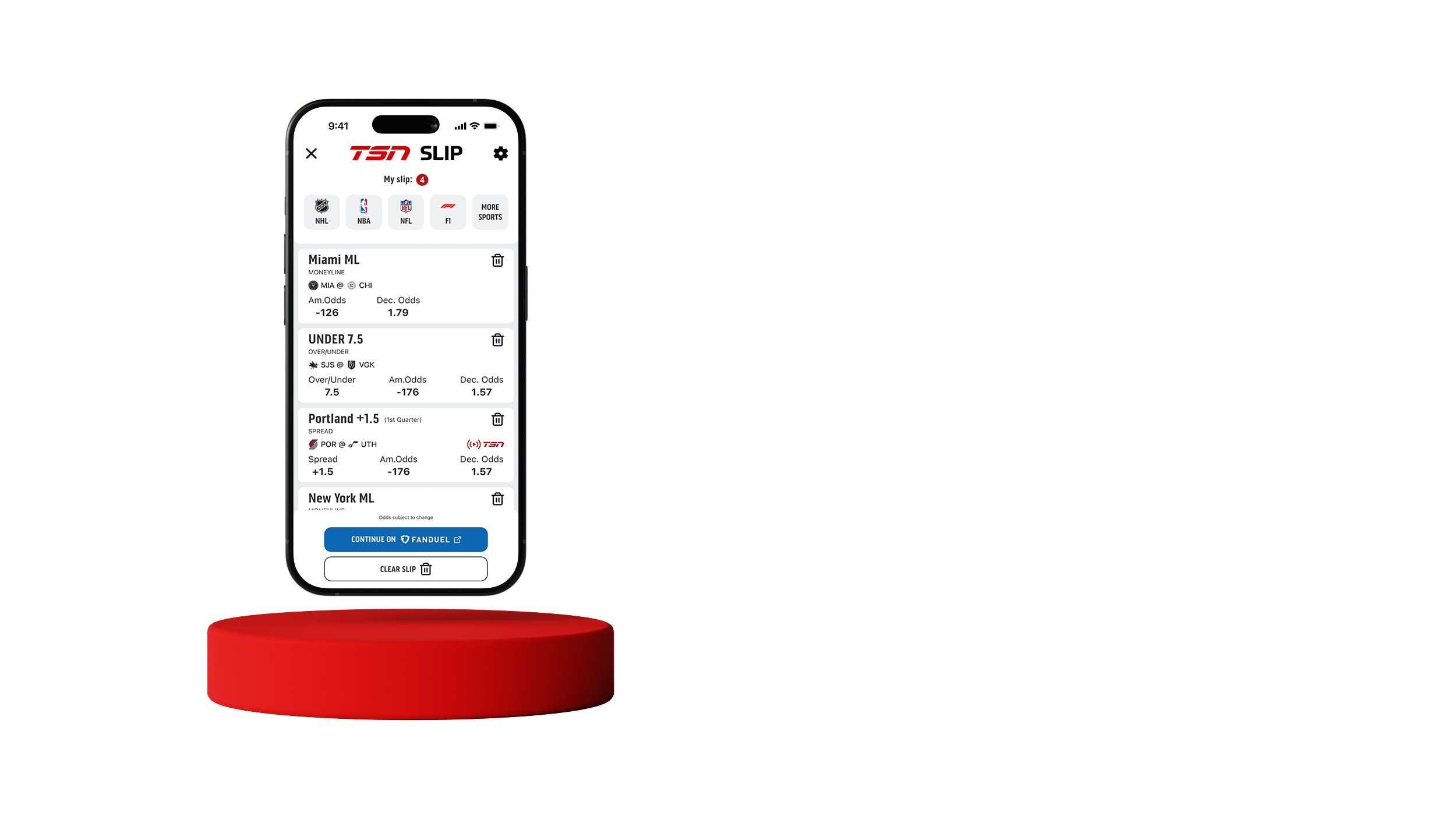 TSN takes sports engagement to the next level with its integrated betslip feature. Fans can create and customize their picks directly on TSN, then transfer them effortlessly to FanDuel for quick and easy betting. This streamlined experience makes placing bets more intuitive, keeping the focus on the thrill of the game.